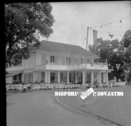Para pelajar putri dalam Peringatan HUT Kemerdekaan Republik Indonesia ke 11 di gedung negara grahadi Surabaya, 17 – 8 – 1956