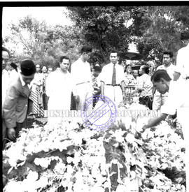 Para pelayat meletakkan karangan bunga di makam Ny. Saniroon, 14 – 8 – 1956