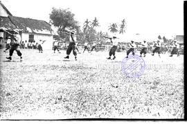 Para pemuda terlihat memperagakan sebuah atraksi ketentaraan pada acara Peresmian Pembangunan Masyarakat Desa (PMD) di Wlingi, 19 – 8 – 1957