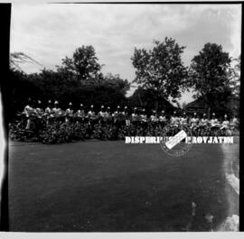 Item VI.54.0656 - Para putri-putri peserta karnaval sepeda hias, bersiap foto bersama untuk memulai karnaval pada peringatan hari ibu di surabaya, 22 – 12 – 1954