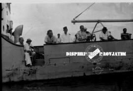 Para rombongan kunjungan tengah menunggu d atas kapal dalam perjalanan ke Kepulauan Gili Raja Kabupaten Sumenep, 14 – 7 – 1956