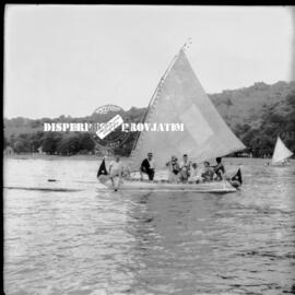 Item VI.55.1043 - Para rombongan pejabat sedang naik perahu layar, sedang menikmati suasana pantai pada saat pembukaan tempat pariwisata pantai pasir putih situbondo, 14 – 8 – 1955