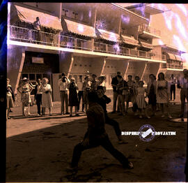 Item VI.69.3615 - Para turis sedang menyaksikan pertunjukan pencak silat di halaman Hotel Tanjung, foto diambil pada kegiatan Promotion Tour di Prigen, Tretes, 10 – 9 – 1969