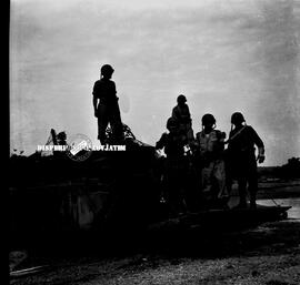 Item VI.63.3280 - Pasukan yang turun dari kapal pengangkutan saat hujan abu vulkanik akibat letusan Gunung Agung Bali (sesuai catatan sejarah letusan Gunung Agung tahun 1963 adalah yang terpanjang hampir 1 tahun), 17 s.d 20 – 3 – 1963