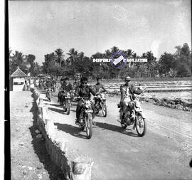 Pawai menyambut kedatangan bendera PON VII Surabaya ketika berada di Kecamatan Mantingan, Ngawi, 6 - 8 – 1969