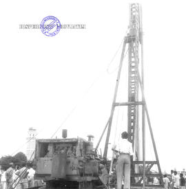Item III.J.56.2210 - Peletakan batu pertama gedung Inspektorat Keuangan. Pemasangan paku bumi sudah selesai 6 September 1956