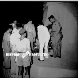 Peletakan karangan bunga di tugu pahlawan dalam malam Peringatan Hari Pahlawan di Surabaya, 10 – 11 – 1956