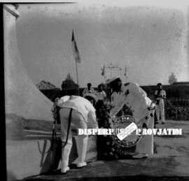 Item VI.60.3029 - Peletakan karangan bunga yang dilakukan oleh perwira Angkatan Laut pada upacara peringatan Hari Kemerdekaan Republik Indonesia di Lapangan Tugu Pahlawan, Surabaya, 17 – 8 – 1960