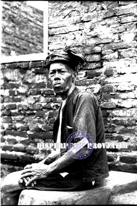 Pembangunan desa kali semoet (semut) loemajang (lumajang), foto laki-laki penduduk asli berada di dekat sebuah bangunan yang belum jadi, 25 – 2 – 1956