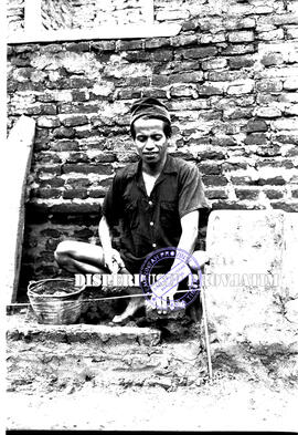 Pembangunan desa kali semoet (semut) loemajang (lumajang), seorang tukang bangunan tengah mengerjakan pemasangan batu bata untuk dinding, 25 – 2 – 1956