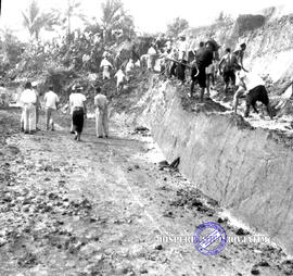 Pembangunan ke Djabung (Tumpang) Malang, tgl. 23 Maret 1957. Warga kerja bakti membuat jalan