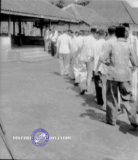 Item III.J.57.2305 - Pembangunan ke Djabung (Tumpang) Malang, tgl. 4 April 1957. Warga berduyun –duyun menuju balai desa