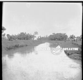 Peninjauan saluran irigasi pada saat anggota DPRDP meninjau HONGEROEDEEM. Penyakit busung lapar disebabkan karena kekurangan zat makanan yang disebut protein atau putih telur di Jember, 28 – 11 – 1956 .