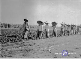 Item III.H.TT.2036 - Perkebunan gula. Para petani bergegas pulang setelah menyelesaikan pekerjaan
