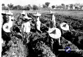 Item III.H.TT.2012 - Perkebunan gula. Petani sedang menanam bibit tebu di sawah