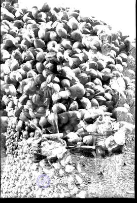 Item III.H.56.1852 - Perkebunan Kopra. Hasil panen kelapa sebelum diolah menjadi kopra dan minyak kelapa di Banyuwangi. Tanggal 28 Januari 1956