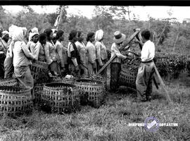 Perkebunan teh Wonosari Lawang, tanggal 28-1-1957. Penimbangan daun teh