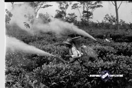 Perkebunan teh Wonosari Lawang, tanggal 28-1-1957. Penyemprotan dikebun teh