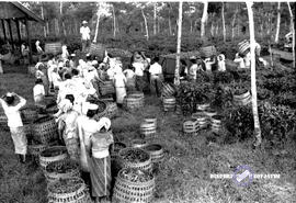 Item III.H.57.1869 - Perkebunan teh Wonosari Lawang, tanggal 28-1-1957. Tampak pekerja sedang memetik teh