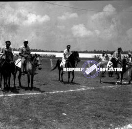 Persiapan di garis start dalam lomba pacuan (patjuan) kuda di jombang (djombang) jawa timur, 26 – 8 – 1956