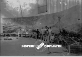 Persiapan stand eksposisi / pameran PMI (Palang Merah Indonesia) di Surabaya yang ditinjau / dihadiri oleh Presiden Sukarno / Soekarno, 9 – 2 – 1959