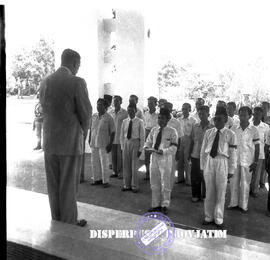 Perwakilan pemuda sedang menyerahkan tuntutan kepada seorang atase / konsulat di Kantor kedutaan / atase Belanda di Surabaya, 10 – 11 – 1957