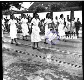 Peserta dari peleton dari SGKPN ikut gerak jalan dalam Peringatan Hari Pahlawan di Surabaya, 10 – 11 – 1956