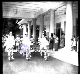 Peserta karnaval sepeda hias pada peringatan hari ibu ketika melintas di depan gedung negara grahadi, 22 – 12 – 1954