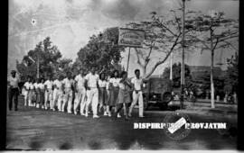 Peserta pawai dari Ekodaja Tiga Surabaya pada peringatan Hari Maritim Surabaya, 21 – 8 – 1963