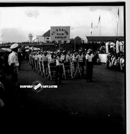 Peserta pawai dari PT. Benteng Veen Surabaya saat melintas di depan kantor Gubernuran pada peringatan Hari Maritim Surabaya, 21 – 8 – 1963