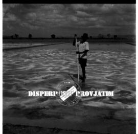 Item VI.55.1037 - Petani tambak garam sedang mengumpulkan garam hasil tambak, foto diambil pada pembukaan tempat pariwisata pantai pasir putih situbondo, 14 – 8 – 1955