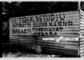 Plakat-plakat tentang konsepsi Bung Karno (Presiden Sukarno) dengan tulisan “tidak setuju Konsepsi Bung Karno Berarti penghianat Negara” di Surabaya, tahun 1957