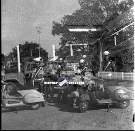 Polisi lalu lintas yang ikut mengawal penyerahan bendera PON VII Surabaya ketika sampai di Kecamatan Mantingan, Ngawi, 6 - 8 – 1969