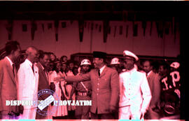 Presiden Sukarno saat akan meninggalkan acara pada acara pekan irian barat di Surabaya, 10 – 11 – 1957