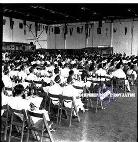 Presiden Sukarno sedang memberikan  wejangan kepada para pemuda dalam  rangka rapat raksasa di Surabaya, 10 – 11 – 1957