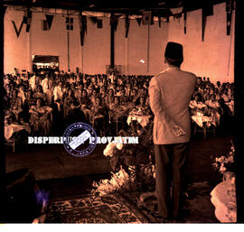Presiden Sukarno sedang memberikan  wejangan pada acara pekan irian barat di  Surabaya, 10 – 11 – 1957