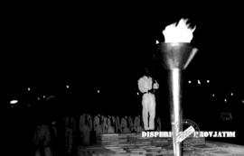 Presiden Sukarno / Soekarno memberikan wejangan dalam malam peringatan Hari Sumpah Pemuda di Tugu Pahlawan Surabaya, 28 – 10 – 1959