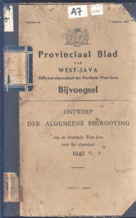 Provincial blad van West-Java officieel nieuwsblad der provincie West-Java bijvoegsel ontwerp der algemeene begrooting van de provincie West-Java voor het dienstjaar 1939 Lembaran Propinsi Jawa Barat, lembaran berita resmi propinsi Jawa Barat. tambahan Rencana anggaran Penerimaan dan Pengeluaran Propinsi Jawa Barat tahun 1939