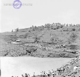 Proyek PLN Karangkates : Coverdam Karangkates dibuka. Dam karangkates dari Jauh/atas , 28 Nopember 1964