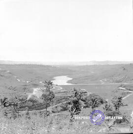 Item IIIJ.64.2446 - Proyek PLN Karangkates : Coverdam Karangkates dibuka. Dam karangkates dari Jauh/atas , 28 Nopember 1964