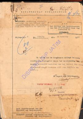 Regentschap bodjonegoro aan het college van gedeputeerden van den provincialen raad van oost java te soerabaja, onderwerp Aanbeiding afschrift besluiten van het college van gecommiffeerden ddo. 28 nov 1938 no. 5 149 / P.I, Bodjonegoro 28 Nov 1938