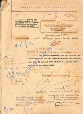 Regentschap Bodjonegoro Aan het college van gedeputeerden van den provincialen raad van Oost Java te Soerabaja onderwerp : Anleg van Schulloopgraen op het schoolorf van de Rgentschaps ambachtsleer gan en de Retno-Soesilo, Bodjonegoro 5 Februari 1942