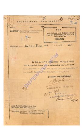 Regentschap bodjonegoro, aan het college van gedeputeerden van den provincialen raad van oost java te soerabaja, onderwerp schorsing markt meesters kasnan en soetamsir, bodjonegoro 16 februari 1938