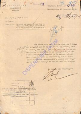 Regentschap bodjonegoro aan het college van gedeputeerden van den provincialen raad van oost java te soerabaja, onderwerp verzoek om goedkeliring van de "Beoordeeling slijsten verordening regentschap bodjonegoro", Bodjonegoro 16 November 1940