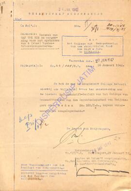 Regentschap Bodjonegoro Aan het college van gedeputeerden van den provincialen raad van Oost Java te Soerabaja onderwerp : Verzoek van Tan Hok Bie om vergunning voor het oprichten van 4 (Vier) bamboe tabaksdroogschuren, Bodjonegoro 26 Januari 1942