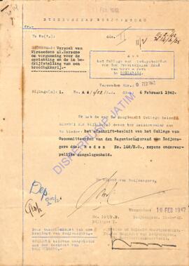 Regentschap Bodjonegoro Aan het college van gedeputeerden van den provincialen raad van Oost Java te Soerabaja onderwerp : Verzoek van Wirosedono al. Darsono om vergunning voor het oprichting en de in bedrijfstelling van een broodbakkerij, Bodjonegoro 6 Januari 1942