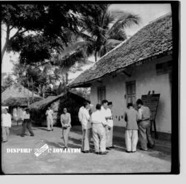 Rombongan juru penerangan tengah berdikusi di halaman sebuah gedung/rumah di pulau Kangean, Tahun 1957