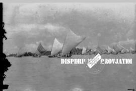 Rombongan perahu nelayan menuju tengah laut pada prosesi sedekah laut di Muncar Banyuwangi, 28 – 1 – 1956