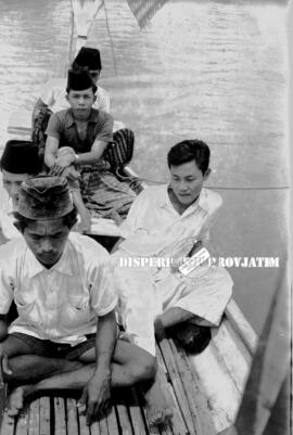 Rombongan perahu nelayan menuju tengah laut pada prosesi sedekah laut di Muncar Banyuwangi, 28 – 1 – 1956