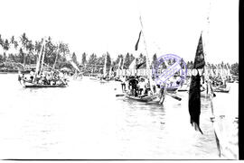 Item VI.56.1135 - Rombongan perahu nelayan menuju tengah laut pada prosesi sedekah laut di Muncar Banyuwangi, 28 – 1 – 1956